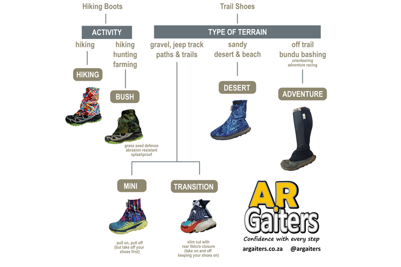 Designed and made in South Africa since 2004, AR Gaiters excel on rocky mountain trails, through thorny bush, and in desert and beach environments.